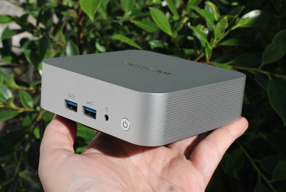 Компоновка портов схожа с другими мини-ПК GEEKOM, но корпус тоньше за счет отсутствия отсека для 2.5-дюймовых SATA-накопителей.