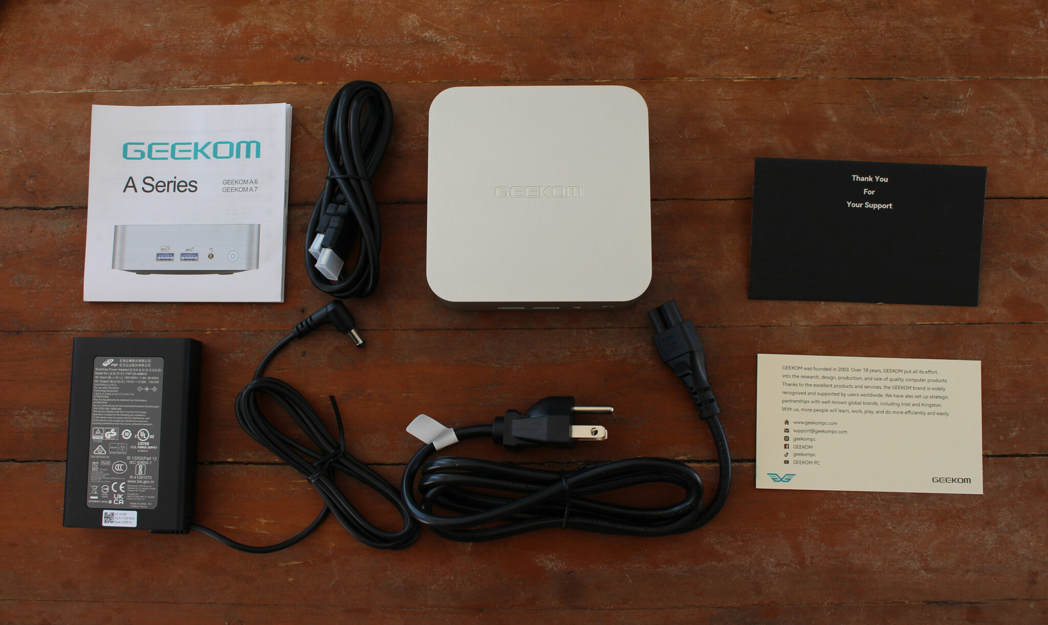 Предыдущие модели GEEKOM с топовыми процессорами комплектовались крупными блоками питания на 120 Вт, но адаптер для A7 значительно компактнее при сохранении мощности. Это актуально для пользователей, планирующих периодически переносить устройство.