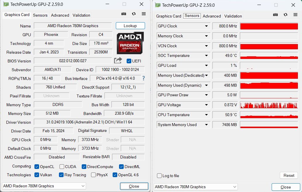 TechPowerUp GPU-Z отображает дополнительные сведения об AMD Radeon 780M Graphics.