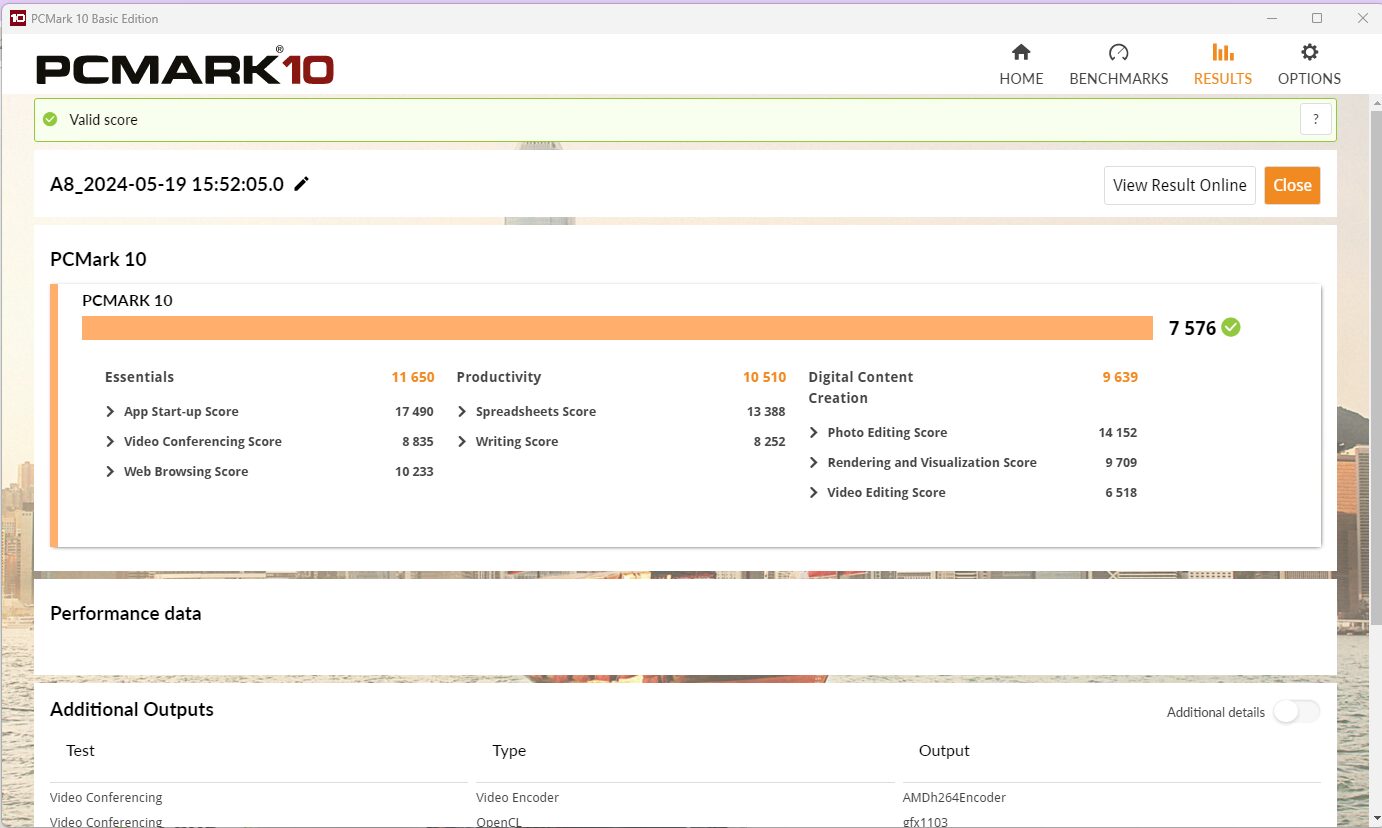 | PCMark 10 | 7576 | 7516 | 6063 | 6681 | 5904 |