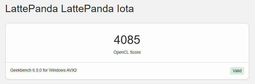 Также был запущен тест OpenCL для ГП, где встроенная графика Intel набрала 4085 баллов. Такой уровень производительности типичен для встроенных ГП этого класса.