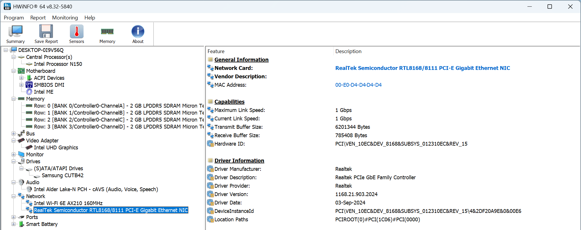 Сетевые интерфейсы включали Intel Wi-Fi 6E AX210, Realtek PCIe GbE и Bluetooth, предоставляемый через модуль Intel. Версия прошивки устройства Bluetooth была указана как LMP 12.14171, что соответствует Bluetooth 5.3 .