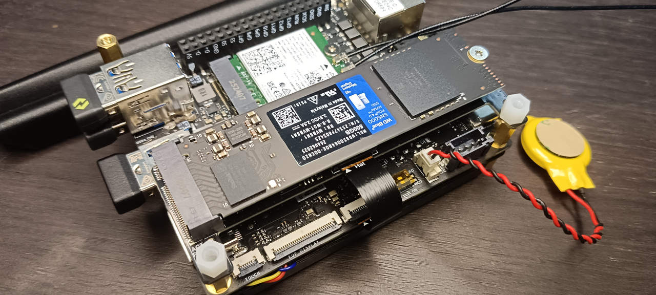 Следующим тестом была плата расширения M.2 M-Key. Были выполнены инструкции по настройке с официального сайта продукта , а затем установлен новый NVMe SSD WD Blue SN5000 объемом 500 ГБ.