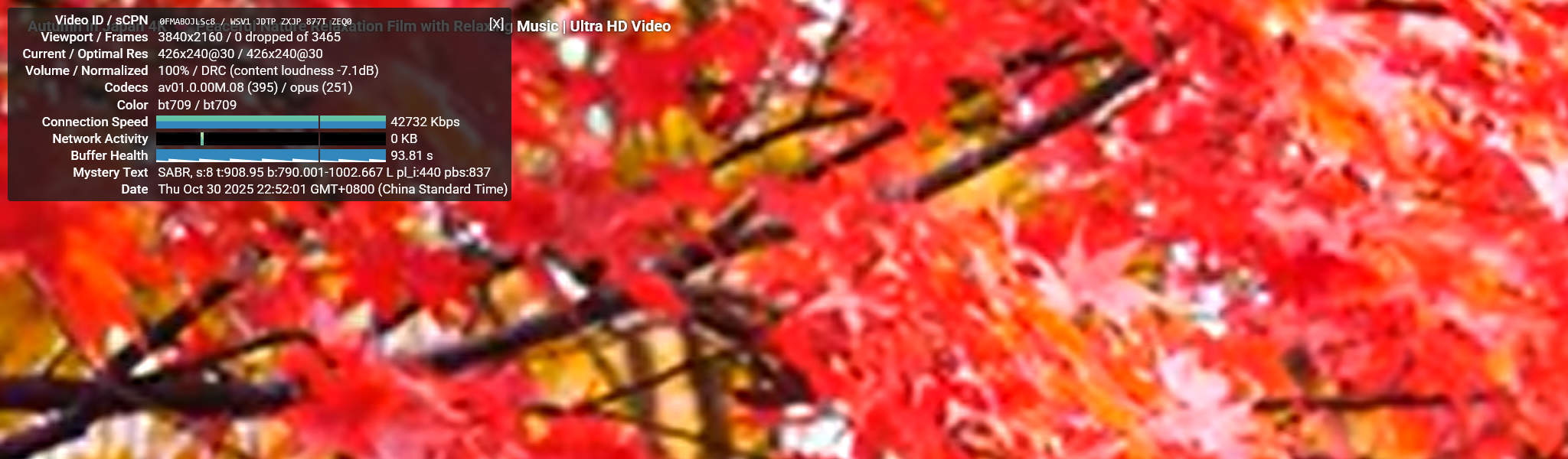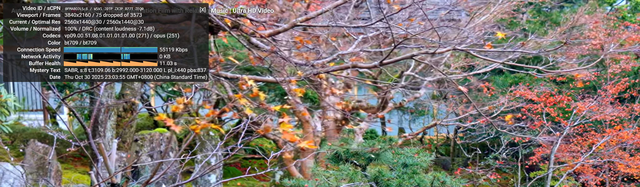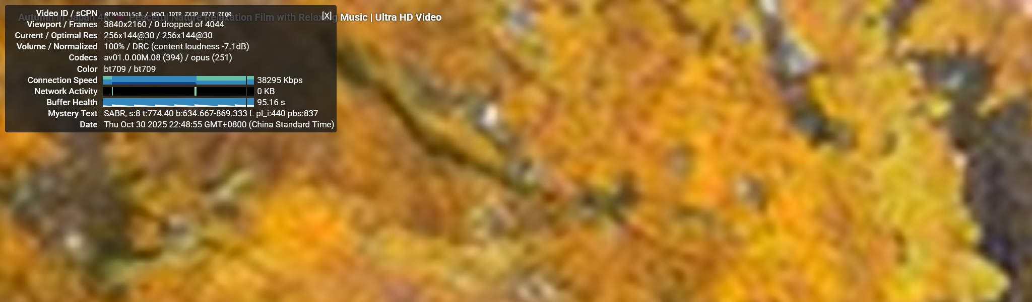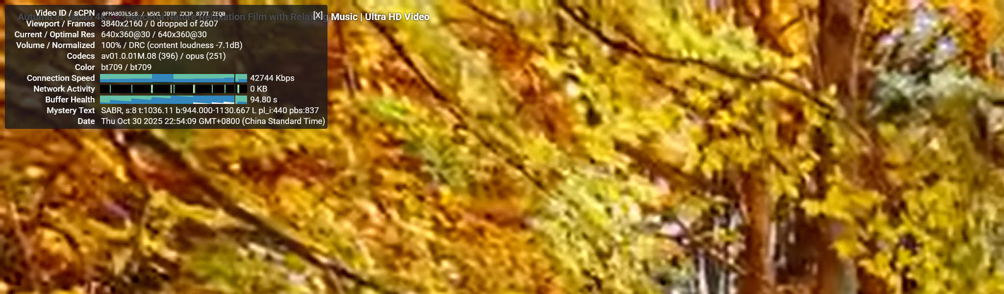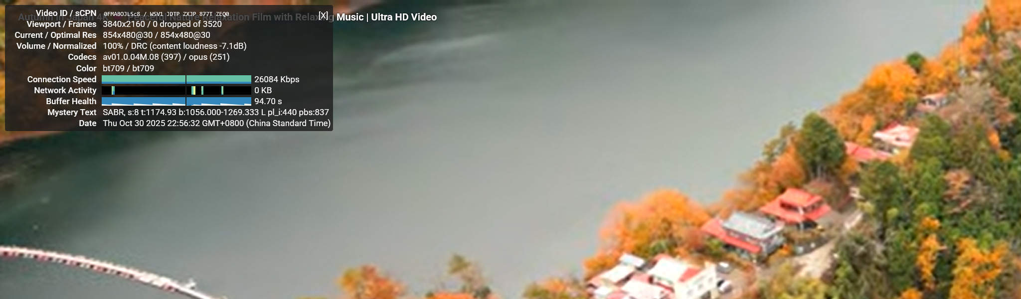 Тесты воспроизведения видео на YouTube проводились в разрешениях от 144p до 2160p с использованием диагностического оверлея Stats for Nerds. LattePanda IOTA демонстрировал плавную производительность при низких разрешениях: 144p, 240p и 360p показывали 0% потерь кадров и минимальное использование ЦП ниже 20%. При 480p воспроизведение оставалось идеально стабильным с потерей кадров менее 1% и средним битрейтом около 2–3 Мбит/с. При увеличении до 720p (HD) видео продолжало воспроизводиться плавно с незначительной потерей кадров около 1–2%, тогда как воспроизведение 1080p (Full HD) показывало немного более высокие потери кадров в диапазоне 5–8%. Поток 1440p (2K) показывал заметные подтормаживания, достигая 20–30% потерянных кадров по мере роста использования ГП до 80%. При наивысшем разрешении 2160p (4K) воспроизведение становилось очень прерывистым, отображая только 3–4 секунды видео перед паузой в 4–5 секунд. Такое поведение соответствовало потере более 60% кадров и почти максимальному использованию памяти ГП, приблизительно 1.3 ГБ из 3.9 ГБ общей памяти.