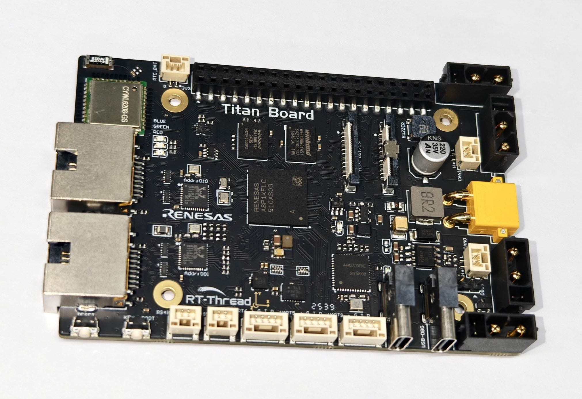 В основном предназначенная для разработки и оценки ОС реального времени RT-Thread, плата RA8P1 Titan поставляется с 32 МБ HyperRAM, 64 МБ HyperFlash, интерфейсами дисплея и камеры, двумя портами Gigabit Ethernet с поддержкой Time Sensitive Networking, WiFi 4 и Bluetooth 4.1, портом USB 2.0 Type-C, интерфейсами CAN Bus, Serial и RS485, 40-контактным GPIO-разъемом для Raspberry Pi, встроенным отладчиком и гибкими вариантами питания: 5 В через USB-C или 9-24 В через разъем XT60.