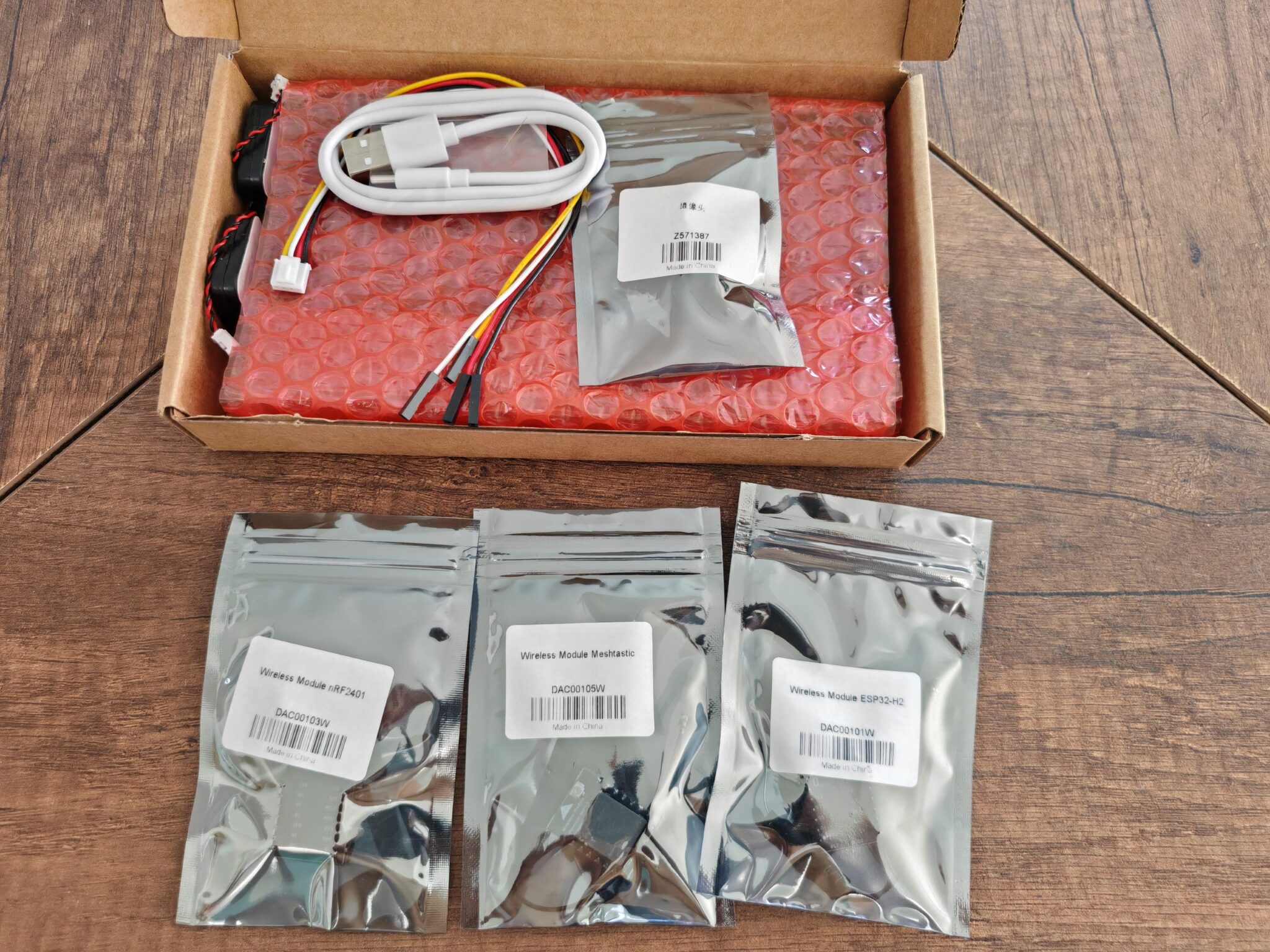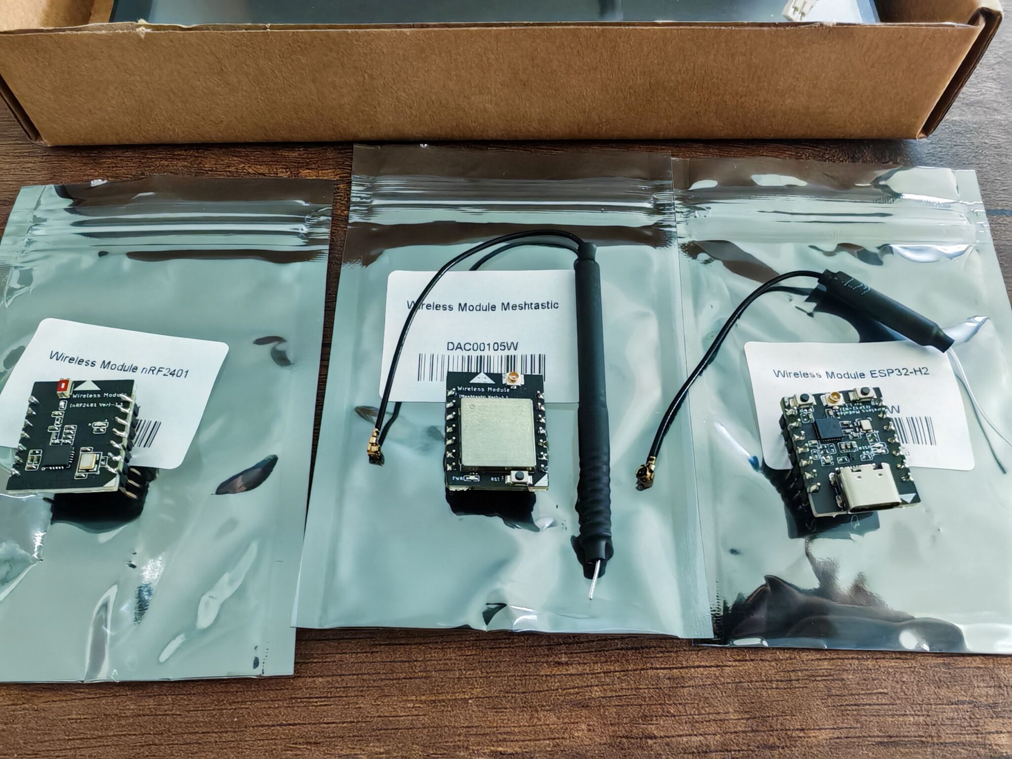 В наш комплект также входили три беспроводных модуля: модуль ESP32-H2 для дополнительной поддержки протоколов Thread, Zigbee и Matter, модуль SX1262 для энергоэффективной дальней связи LoRa и беспроводной модуль nRF2401 на 2.4 ГГц.