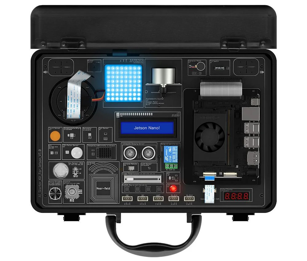 Комплект интегрирует 11,6-дюймовый IPS сенсорный экран, 8-мегапиксельную камеру на сервоуправляемом подвесе, модуль голосового взаимодействия и 30 распространенных электронных модулей, встроенных в комплект. Компания также предоставляет 39 руководств на Python для управления сенсорами, компьютерного зрения и базовых рабочих процессов ИИ. Помимо дисплея, камеры и аудиофункций, комплект также включает расширение через I2C, UART и GPIO.