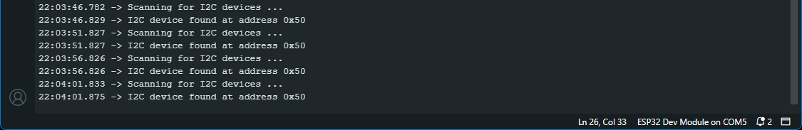 Началось с быстрого сканирования I2C, которое обнаружило устройство по адресу 0x50.
