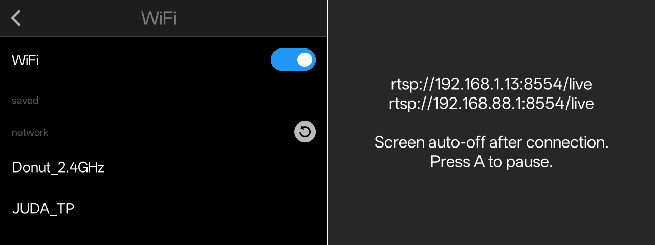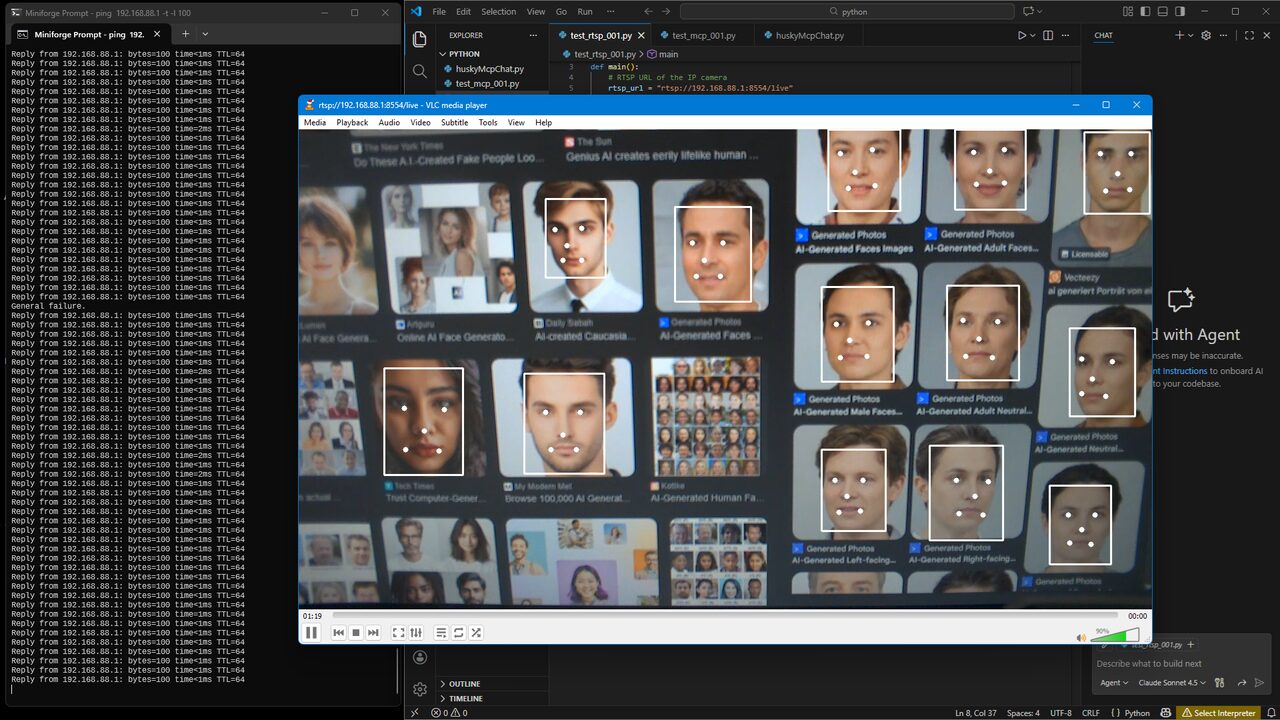 Была протестирована потоковая передача RTSP с использованием Python и OpenCV с предоставленным URL RTSP. Соединение было успешно установлено, и видеокадры передавались корректно. Также была протестирована беспроводная потоковая передача путем включения подключения Wi-Fi и активации опций потоковой передачи RTSP и WebRTC в меню Video Streaming, и она работала ожидаемо. На следующих изображениях показан прямой эфир, просматриваемый в веб-браузере и в VLC Media Player.