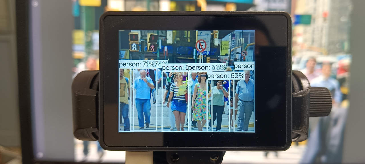 Далее был протестирован режим распознавания объектов. DFRobot утверждает, что эта модель может идентифицировать более 80 типов объектов. Его распознавание было протестировано на обычных объектах в офисе, таких как человек, стул, кофейная чашка и смартфон, и оно работало очень хорошо. На следующем изображении показан пример работы режима распознавания объектов, протестированного на том же изображении пешехода.