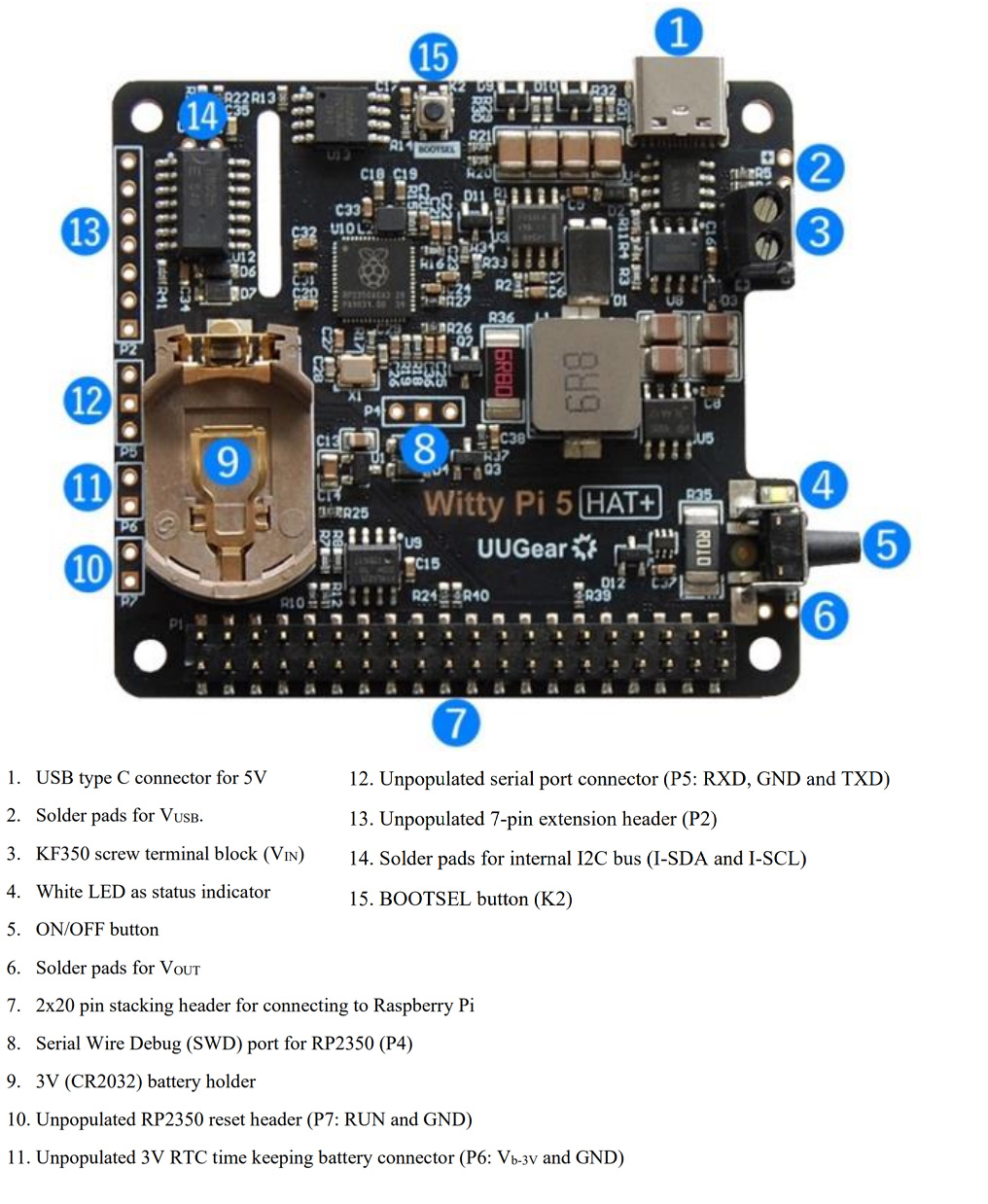 Разработанный UUGear, Witty Pi 5 HAT+ – это плата-планировщик питания для Raspberry Pi, в которой используется микроконтроллер RP2350 для выполнения логики планирования. Она включает высокоточный RTC с мониторингом напряжения и температуры для автоматического включения/выключения питания, что делает её подходящей для проектов на солнечной энергии, экологических мониторов и промышленных контроллеров, требующих запланированного управления питанием для продления срока службы батареи.