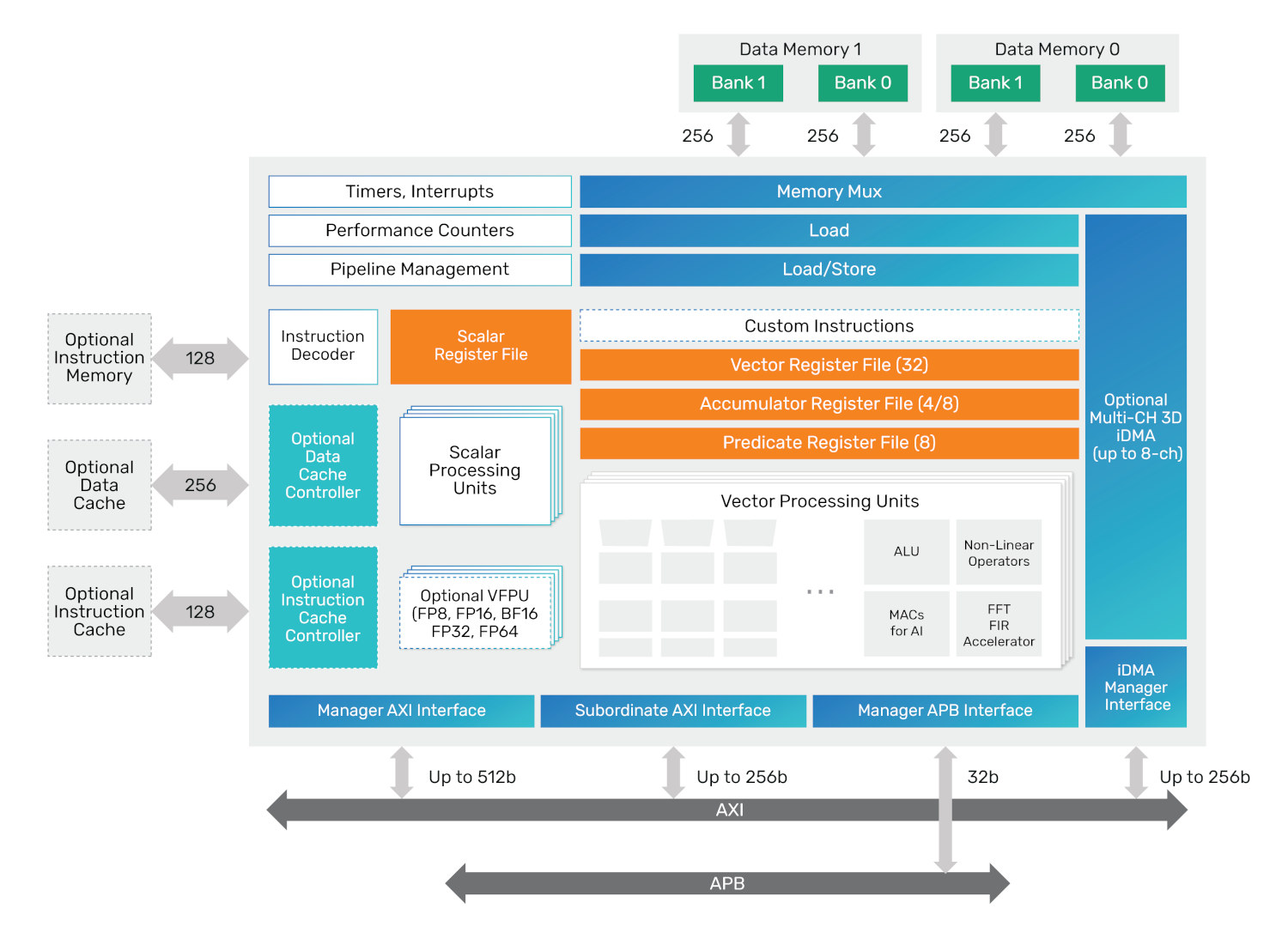 - Опциональная поддержка векторных операций с плавающей запятой – FP8 (преобразование), BF16 (преобразование), FP16, FP32, FP64