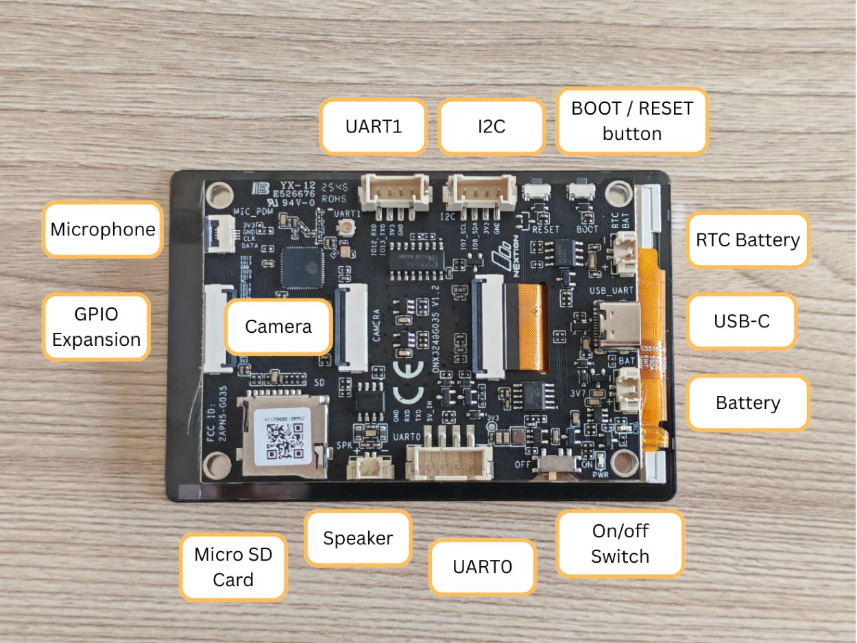 | Programming | Script in Nextion Editor | ESP-IDF framework, Arduino IDE |