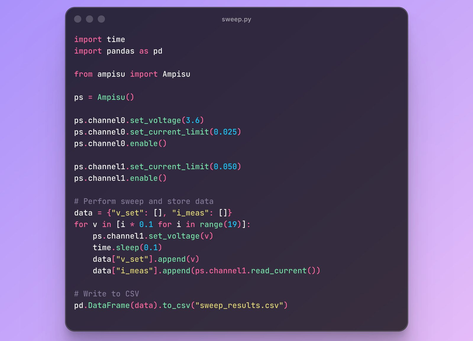 Ampisu можно настраивать с помощью веб-интерфейса на основе WebUSB, набора команд SCPI и Python API, что упрощает конфигурацию с ПК, Raspberry Pi и автоматизированными тестовыми системами без необходимости установки драйверов. Управление также возможно по USB через последовательный интерфейс, поддерживается CSV-последовательность для автоматизированных профилей питания, а все конфигурации можно сохранять в энергонезависимой памяти для полностью автономной работы. Компания также отмечает, что проект имеет открытый исходный код, а файлы аппаратной части, прошивка, исходный код веб-интерфейса и библиотеки будут опубликованы по окончании кампании.