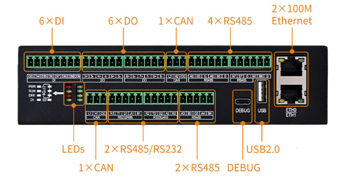 - 8x RS485, 2x RS232, 2x CAN FD / CAN 2.0B (Расширенная версия)