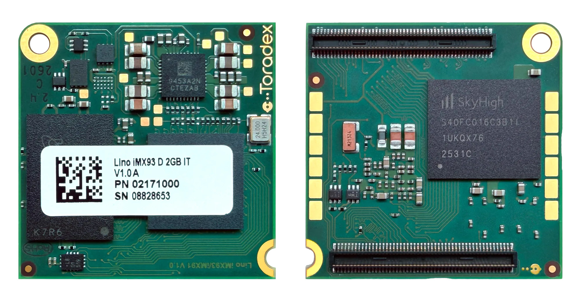 Toradex представила два новых ультракомпактных (30×30 мм) семейства системных модулей (SoM): OSM и Lino, на базе систем-на-кристалле NXP i.MX 91 или i.MX 93 с ядрами Arm Cortex-A55 для промышленных и IoT-приложений на периферии сети.