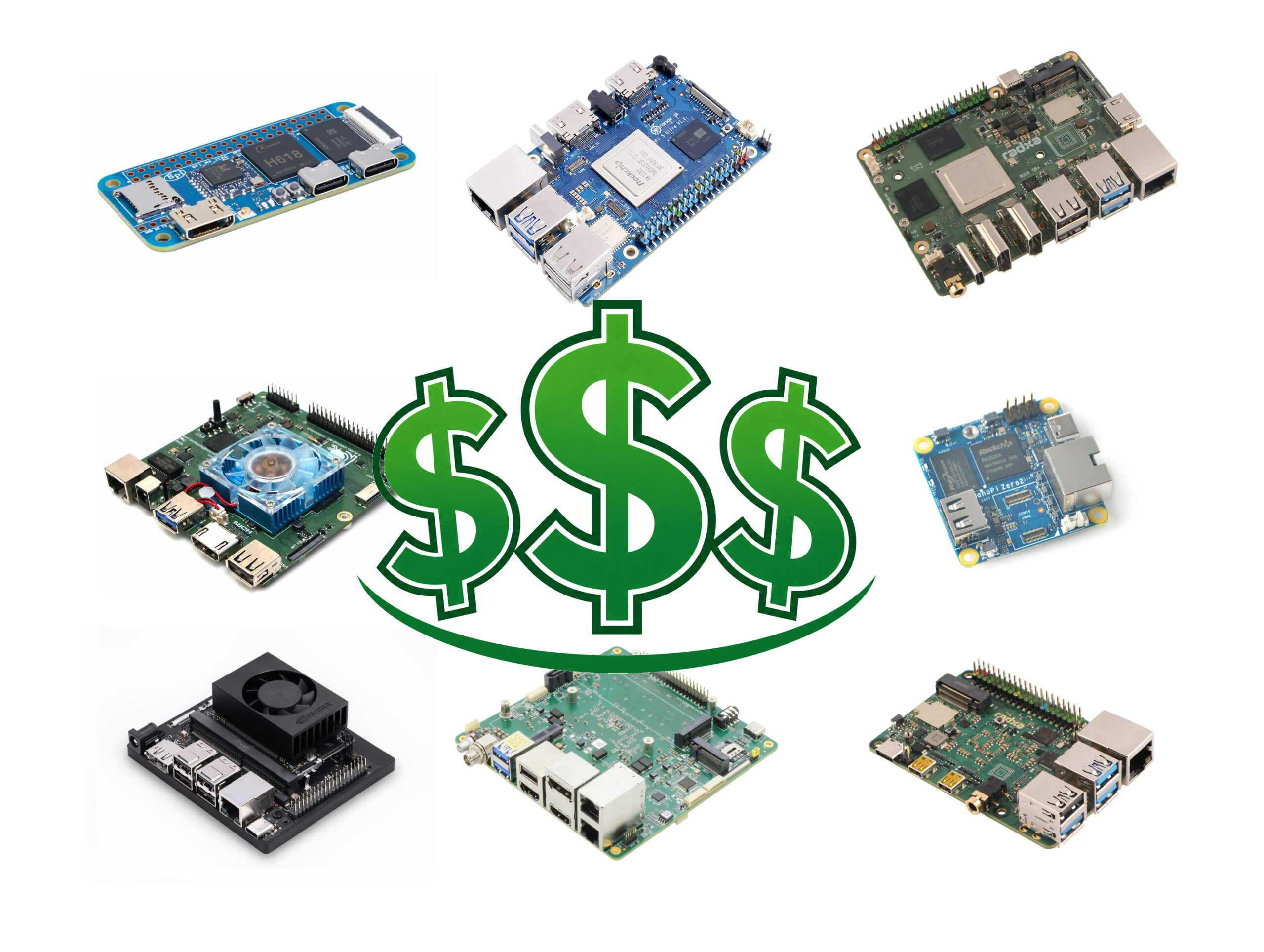 Поэтому было решено проверить изменение цен на несколько SBC, представленных в 2024 году, до всего этого безумия. Будет использовано по одному Arm SBC от каждого крупного вендора, а также добавлено пару x86 SBC, чтобы оценить степень их влияния.